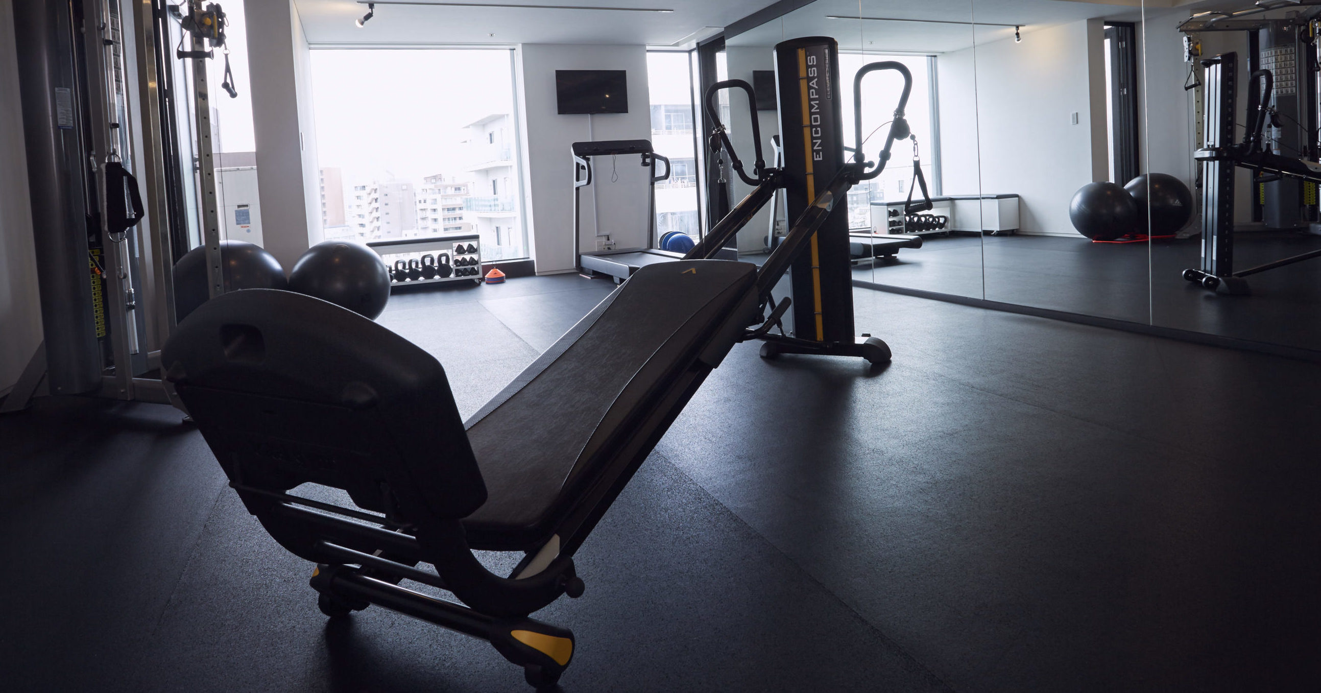 ENCOMPASSは、てこと滑車の原理を用いて自体重を負荷にエクササイズを行う設計を用い、固定式のケーブルマシンとは次元の違う自由度を獲得しました。その結果として、筋力強化とともに関節可動域の向上、さらには、コアの安定性の向上などを同時に実現させることができるマシンです。